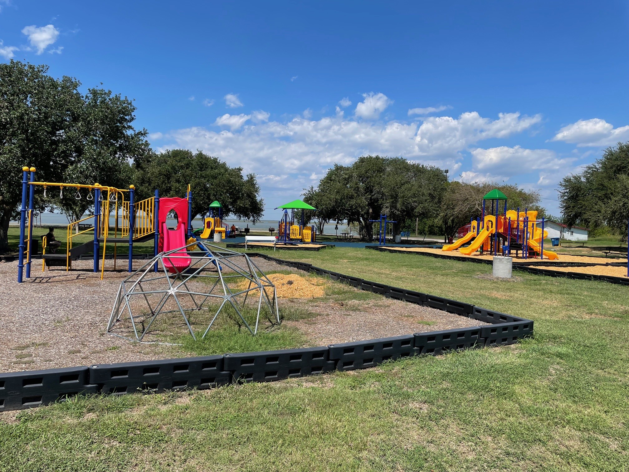 Bill Sanders Memorial County Park is a free rural park, open every day. It is located on San Antonio Bay near Seadrift. The County is adding new improvements to bring more visitors to the park. The purpose of this project is to construct an outdoor pavilion and to provide shading over the existing playground structure and swings.