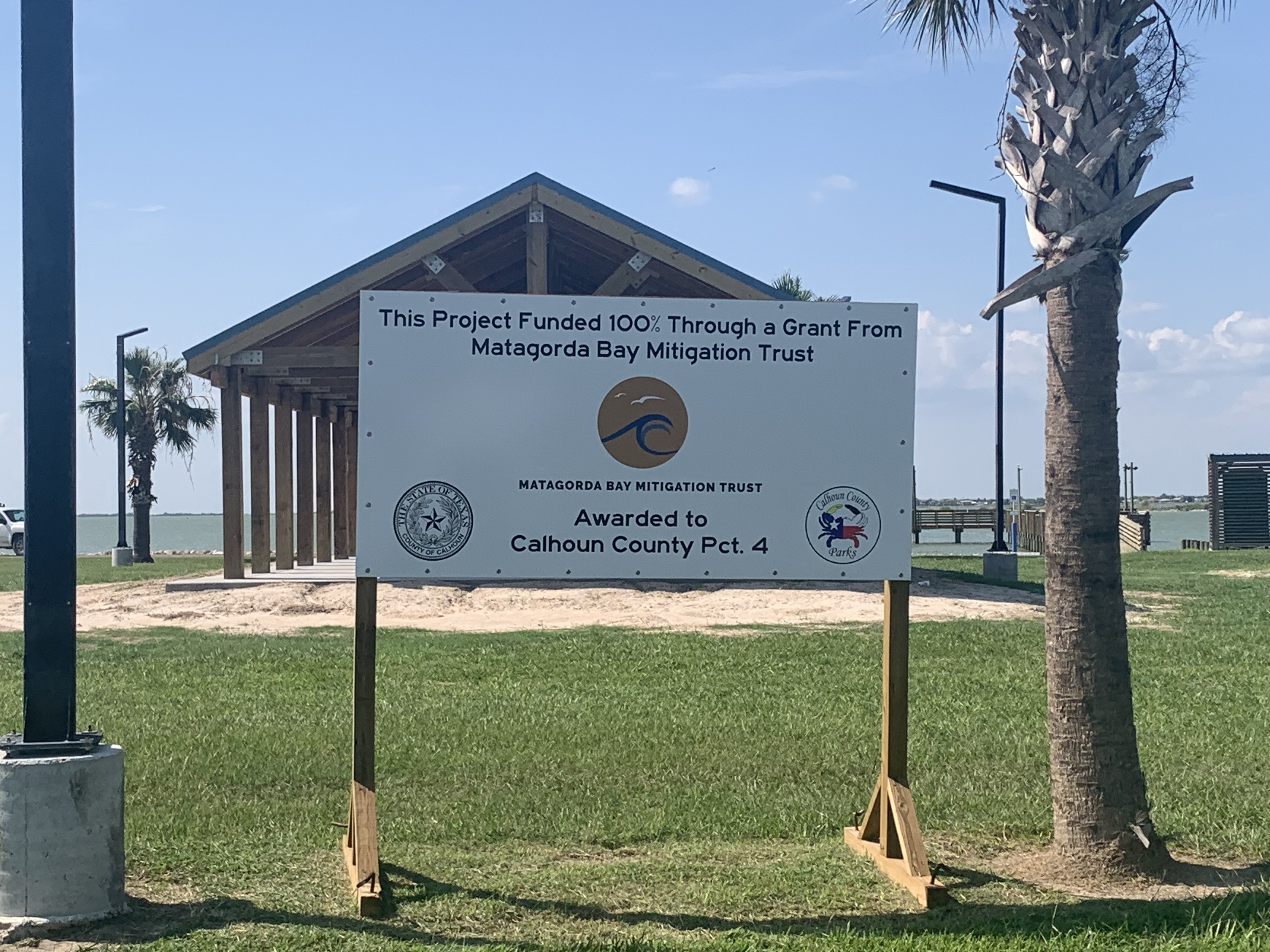 This project is listed as a Tier One project in the Texas General Land Office 2023 Resiliency Plan. It would provide shoreline protection and restoration along approximately 1,350 LF of park shoreline. The existing bulkhead would be replaced; a new breakwater would be constructed to protect the boat ramp area; the revetment along the western end of the park that protects the park road would be improved; and marsh areas along the shorelines would be renourished. Funding from the Matagorda Bay Mitigation Trust will be used to fund the local match contribution up to $2,100,000 and is awarded contingent upon Calhoun County receiving Texas General Land Office or other funding for the remainder of the project costs within 3 years of award of Matagorda Bay Mitigation Trust funding.